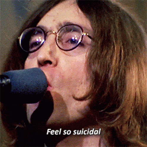 John Lennon passionately sings 'Feel So Suicidal' and 'Even Hate My Rock And Roll' into a microphone.