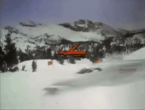 Animated trailer for 'The Concorde Airport '79' featuring a red vehicle speeding through a snowy mountain landscape.