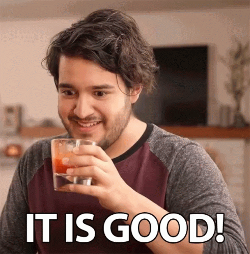 A man from The Crazy Gorilla Comedy Channel holds a drink and exclaims, 'It Is Good!'