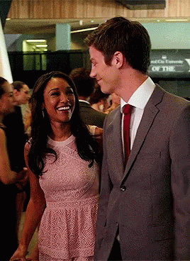 Barry Allen (Grant Gustin) and Iris West (Candice Patton) share a happy moment at an event.