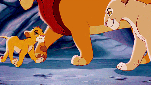 Simba, Mufasa, and Sarabi together in a heartwarming scene from The Lion King.