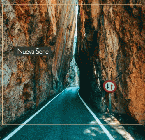 A dramatic narrow road winding through a towering rock gorge, announcing a new series titled 'The Narrow Road'.