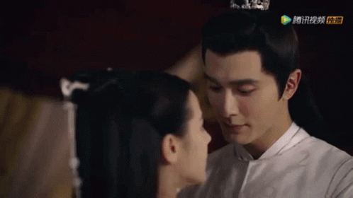 Song Xuan Ren and Fengjiu share an intense, close gaze in a dramatic scene from The Pillow Book, dressed in traditional attire.