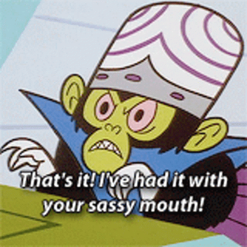Mojo Jojo from The Powerpuff Girls angrily declares, 'That's it! I've had it with your sassy mouth!'