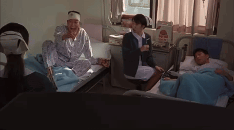 Kang Young-min bursts into hysterical laughter in a hospital room, while nurses and another patient watch.