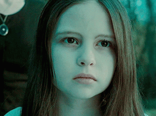 Samara Morgan from The Ring in a haunting close-up, her eyes briefly closing with an eerie gaze.