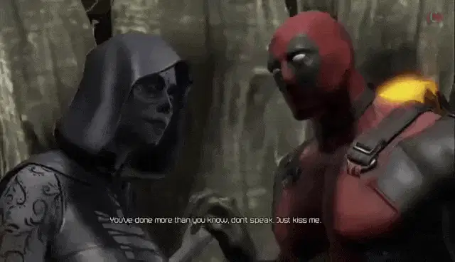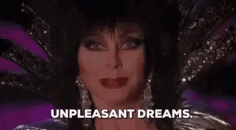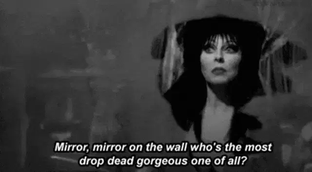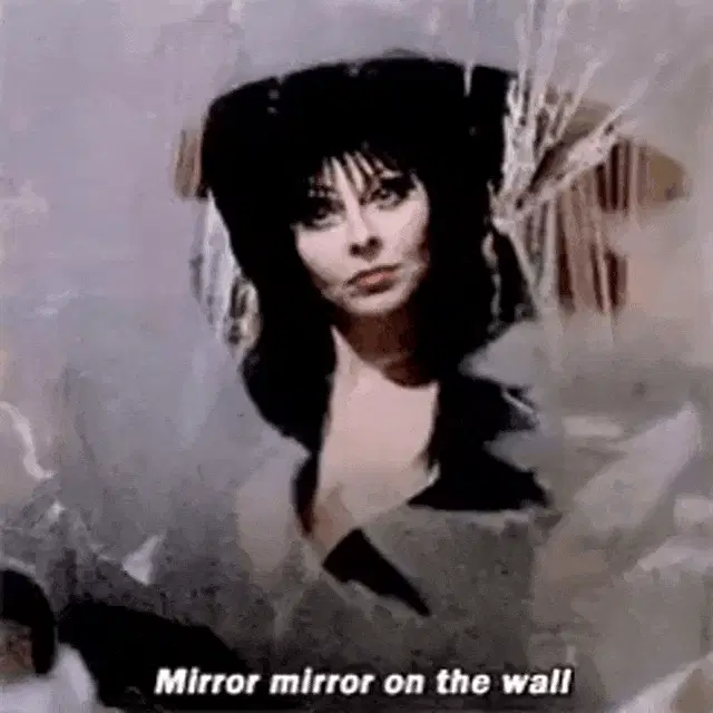 The Seeker Mistress in an elegant white costume with a braid, posing against a vibrant red curtain.