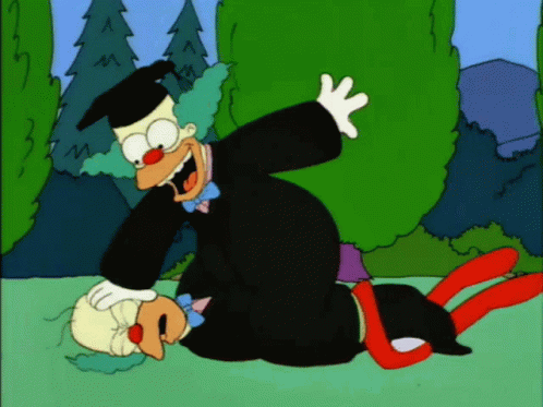 Krusty the Clown in graduation attire appears to tase another Krusty in a funny, looping scene from The Simpsons.