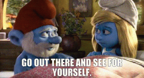 Papa Smurf advises Smurfette to 'Go Out There And See For Yourself' in a scene from The Smurfs 2.