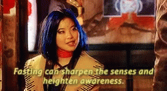 Taisan from The Tribe, with blue hair, explains how fasting can sharpen senses and heighten awareness.