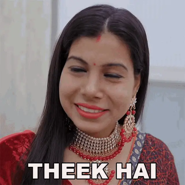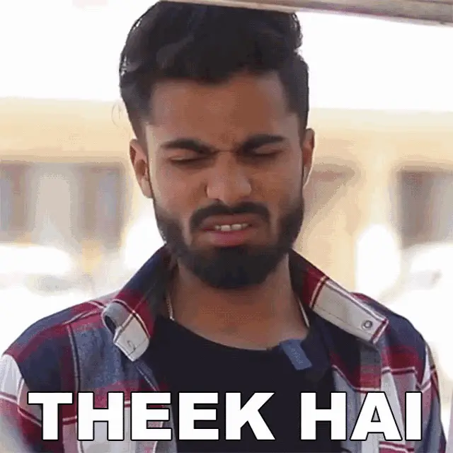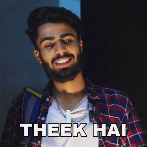 Rahul Jha smiling and saying 'Theek Hai' (Okay) in a plaid shirt.
