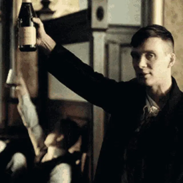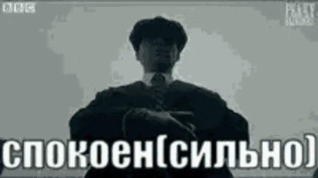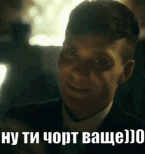 Thomas Shelby from Peaky Blinders with a mischievous smile and a Russian meme caption.