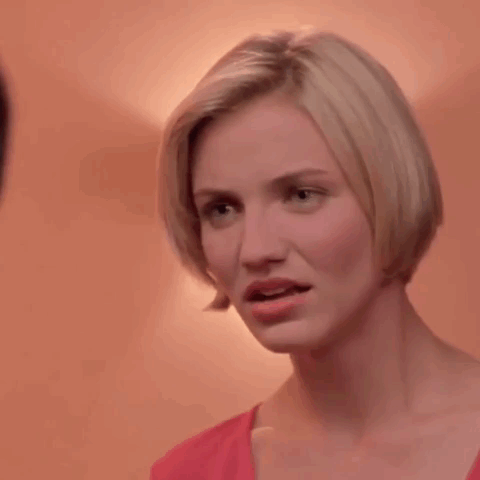 Cameron Diaz as Mary in There's Something About Mary, asking 'Is that GEL?' with a curious expression.