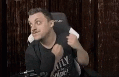 Thevr Pisti makes a funny, exaggerated face and gestures while sitting in a gaming chair, expressing disappointment or surprise.