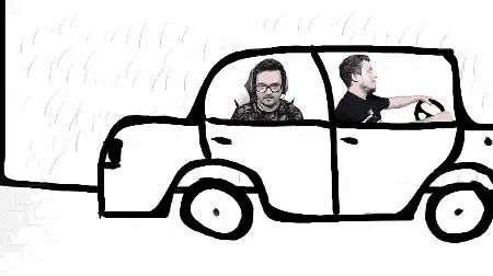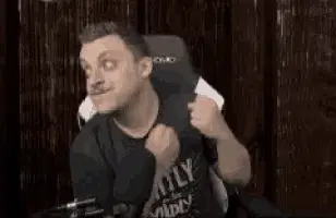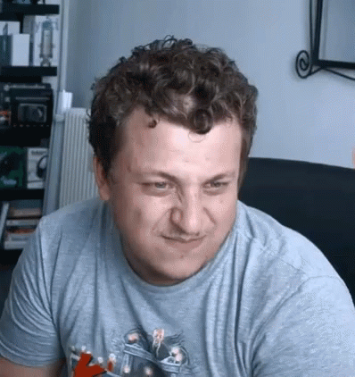 Thevr makes a series of funny, scrunched-up faces, looking to the side before breaking into a smile.