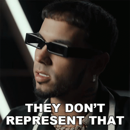 Anuel Aa, wearing sleek sunglasses, delivers the powerful statement 'They Don't Represent That'.