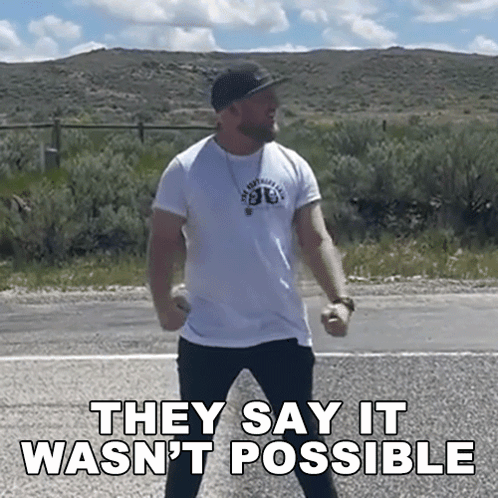 DJ Hunts stands on a road, pointing, with the powerful message 'They Say It Wasn't Possible' displayed.