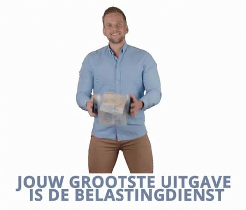 Thijs Verlangen discusses finances, showing money, with a message about taxes being the biggest expense.