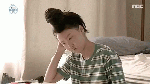 Hwasa from Mamamoo looks troubled, scratching her head with a unique hairstyle.