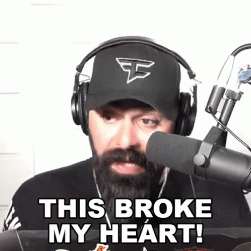 Daniel Keem, also known as Keemstar, reacts emotionally with the caption "THIS BROKE MY HEART!" while wearing headphones.