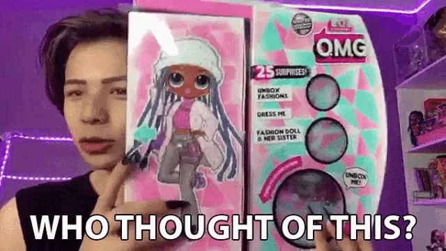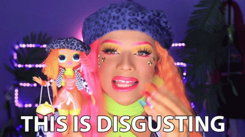 a woman holding a doll with the words " this is disgusting " on the bottom