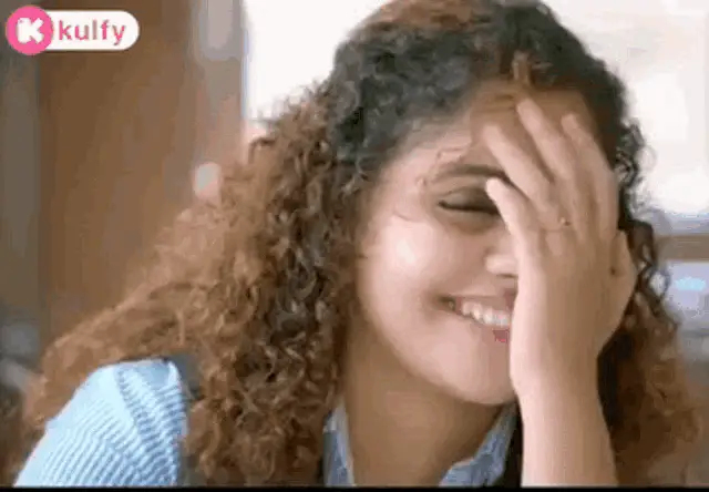 Keerthy Suresh's close-up shot from the movie Thodari, showing her shy expression with a bindi and pearl earring.