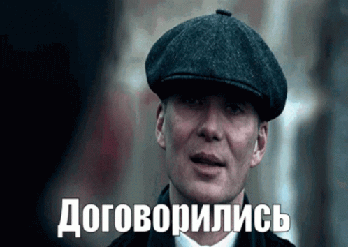 Thomas Shelby from Peaky Blinders with the meme text 'Agreed' (Договорились) on screen.