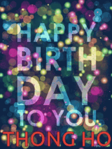 A vibrant birthday message for Thong Ho, featuring colorful bokeh lights and celebratory text.