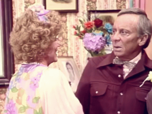 Helen Roper (Audra Lindley) hugs Stanley Roper (Norman Fell) in a classic scene from Three's Company.