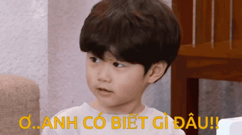 A cute little boy from Thu Thach Lon Khon makes a funny, confused face with the caption 'Oh... I don't know anything!!'