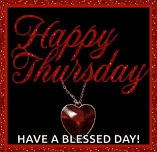 An animated sign wishing 'Happy Thursday' and 'Have a Great Day!', with an arrow pointing towards the 'weekend'.
