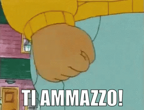 Arthur character making a fist with the Italian caption 'TI AMMAZZO!' (I'll kill you!) displayed, expressing anger.
