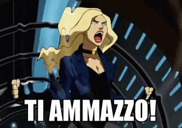 Animated Black Canary screams 'Ti Ammazzo!' (I'll kill you!) with intense fury, ready to strike.