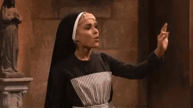 From 'Ti Spedisco In Convento Italia', a nun instructs a young woman, 'Don't ever swear! Okay?'