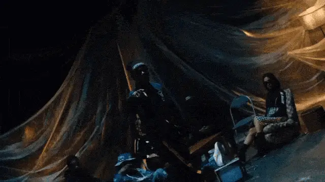 Tiakola delivers an energetic rap performance of his song Kxi, surrounded by friends in an urban setting.