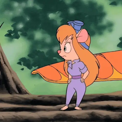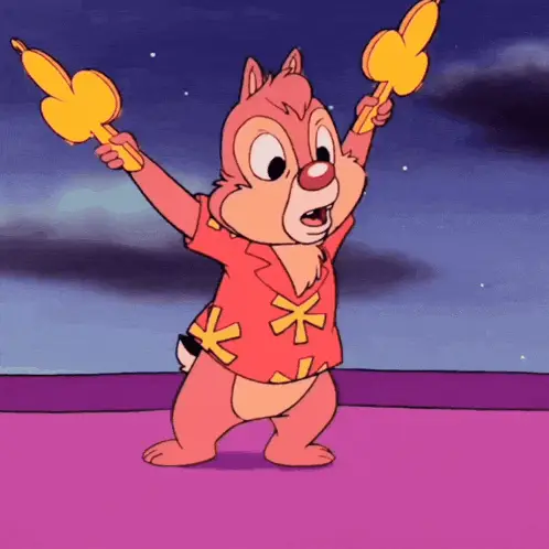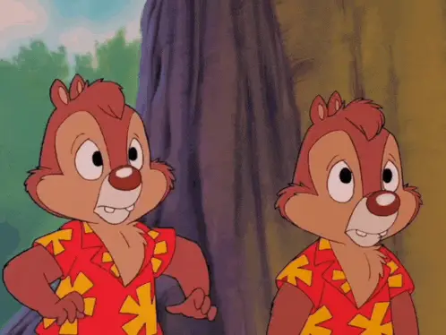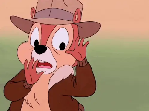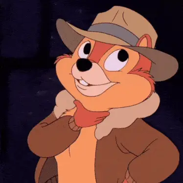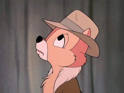Chip, from Chip 'n Dale (Tic Tac Tic Et Tac Rongeurs Du Risque), wearing a fedora, looks up with a surprised expression.