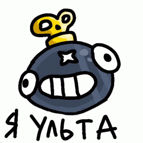 Pixel art animation of Brawl Stars character Tick, featuring a wind-up key and the Russian text 'I'm an ult'.