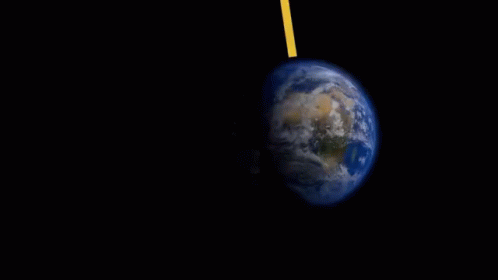 Tierra Planeta: The Earth rotates in space, suspended like a pendulum.