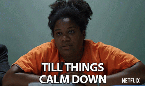 Adrienne Moore as Cindy Hayes in Orange Is The New Black, saying "Till Things Calm Down" in a jail setting.