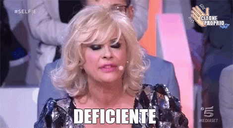 Tina, a woman in a sequined dress, emphatically says 'Deficiente' on Italian TV.
