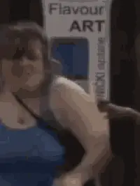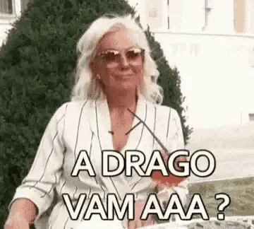 Tina Ivanovic performs an energetic dance and hair flip in front of the DM SAT logo.