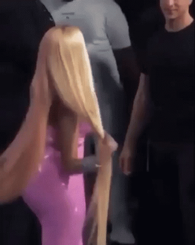 Nicki Minaj showcases her incredibly long blonde hair and pink outfit, captured by Tinaamontana.