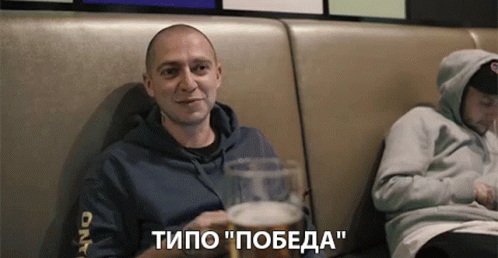 Oxxxymiron gestures with a 'Type Of Victory' sign while holding a phone, sitting on a couch with a beer.