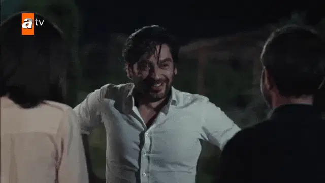 Tipi from the Turkish series EDHO making a gesture while seated at a table.