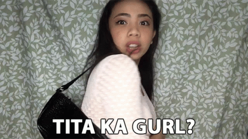 Camille Viceral asks 'Tita Ka Gurl?' while posing with a black bag, referencing the 'Titas of Manila' trend.