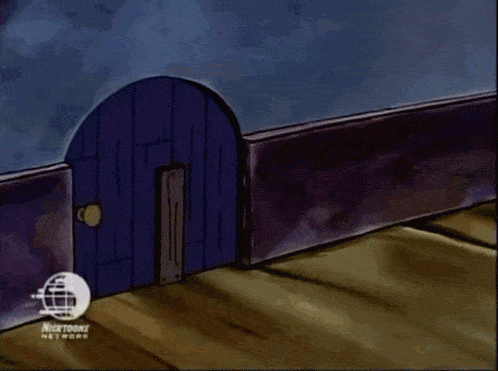 Tito, a cartoon character, waves and enters a small door.