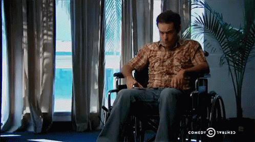 A man in a wheelchair appears in a Comedy Central advertisement.
