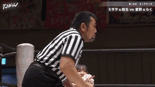 two women are wrestling in a ring with a tjpw logo on the bottom