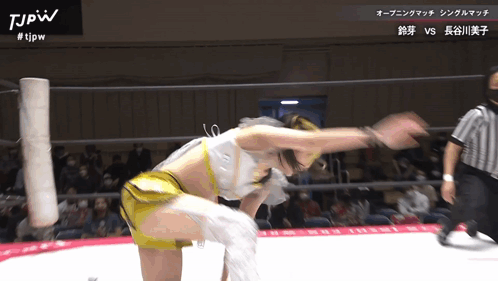 a woman in a wrestling ring with #tjpw written on the bottom