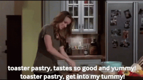 Quinn from One Tree Hill prepares a toaster pastry, singing about how good and yummy it tastes.